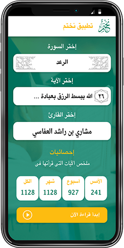 ولهذا قام موقع رسول الله Rasoulallah.net بتطوير برنامج نختم لإحياء قراءة القران الكريم في واقع المسلمين في حياتهم اليومية حيث يمكننا من قراءة القرآن الكريم وختمه بانتظام، فعندما يقوم المستخدم بفتح هاتفه يقوم البرنامج بعرض آية من آيات القرآن الكريم عليه وهكذا كلما يفتح هاتفه تظهر له آية من آيات القرآن وهكذا بالترتيب حتي يصل إلى أخر السورة، ويوفر البرنامج أيضاً تفسير آيات القرآن الكريم ومعرفة معاني الكلمات كما يمكننا من خلال هذا التطبيق اختيار القارئ الذي نفضل سماعة.